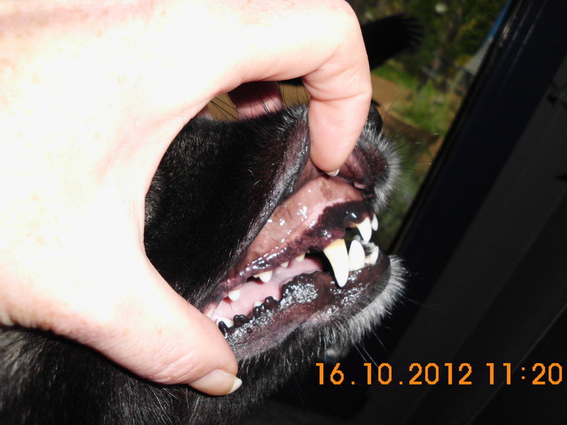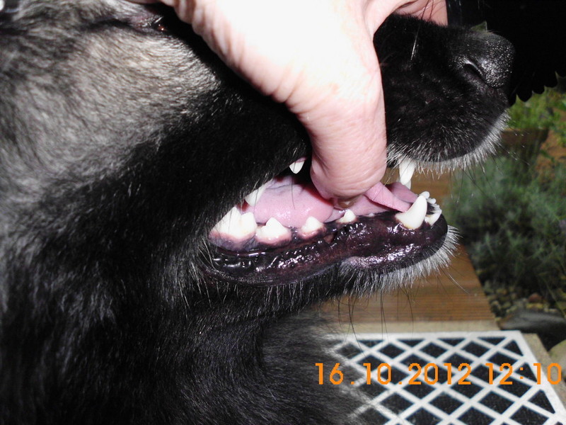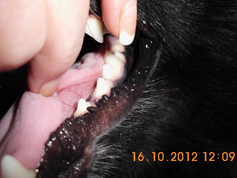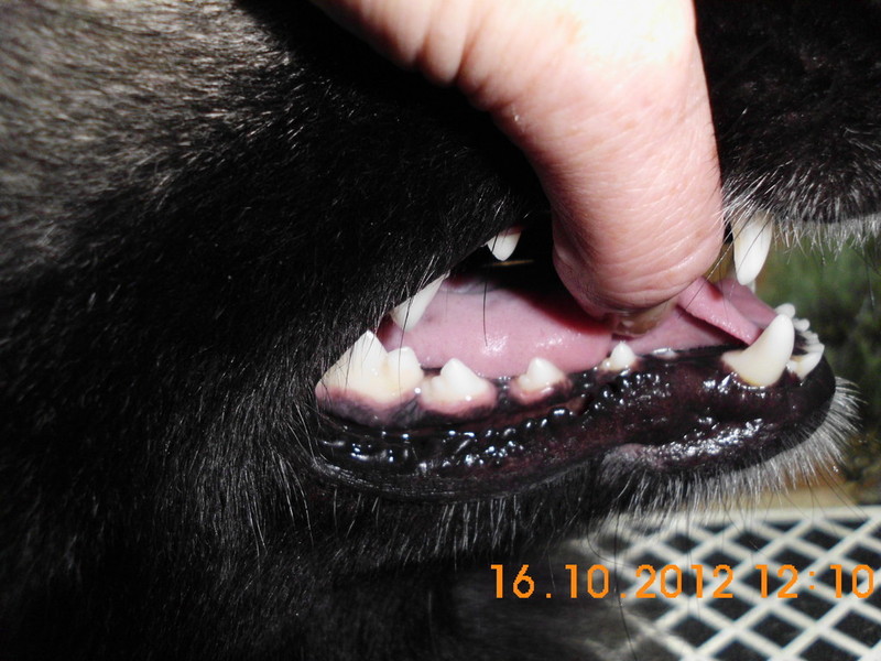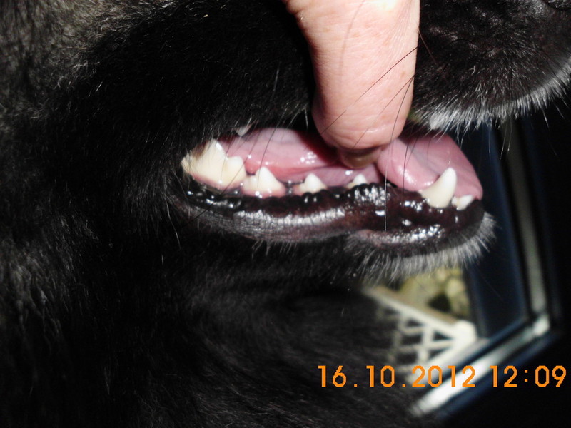 Hier die Bescheinigung darüber, dass Duke von Klein Manhattan, ein vollzahniges Scherengebiss hat mit allen Prämolaren, sowohl unten wie auch oben.